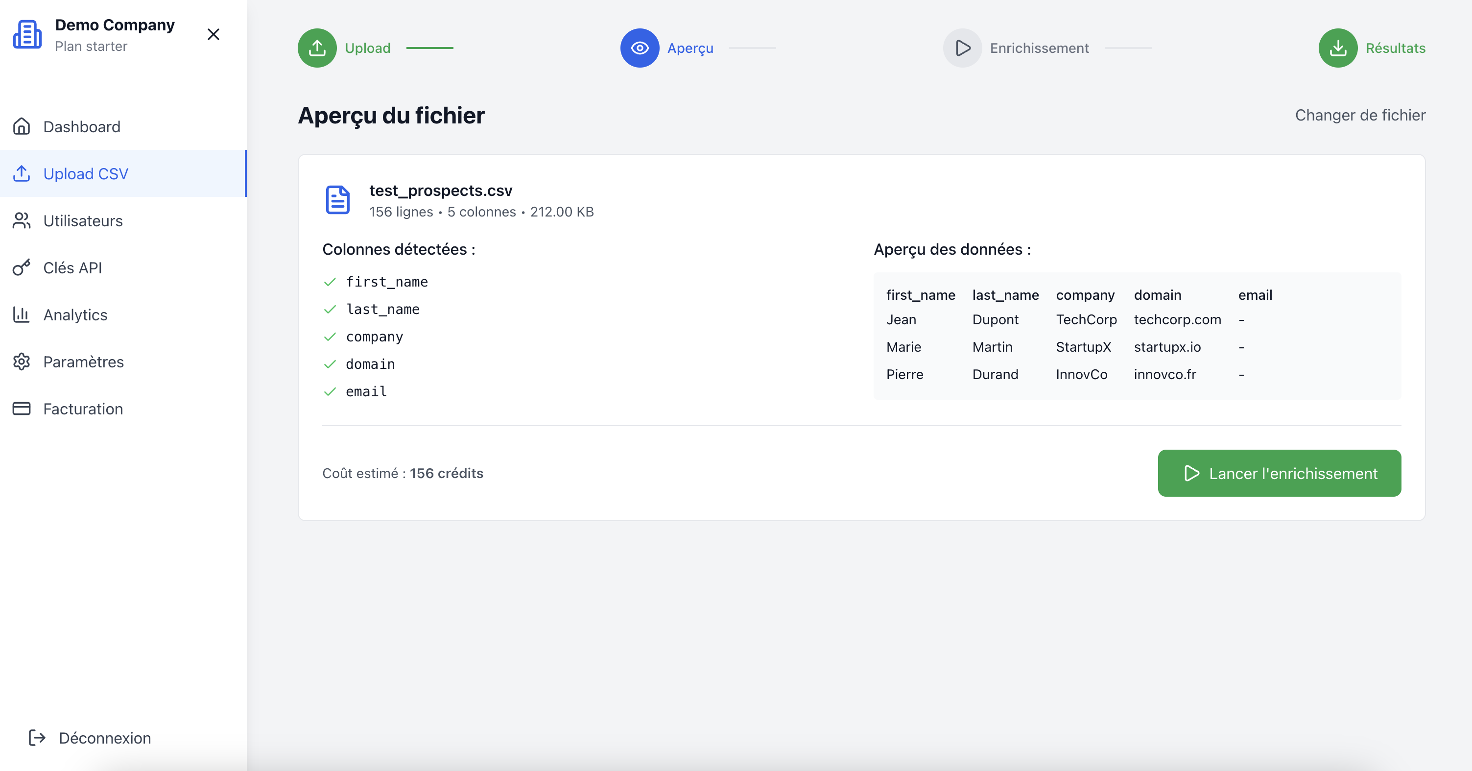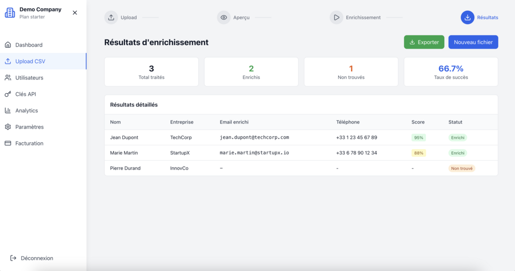 LeadEnricher — Enrichissement B2B FR, prêt en 10 minutes